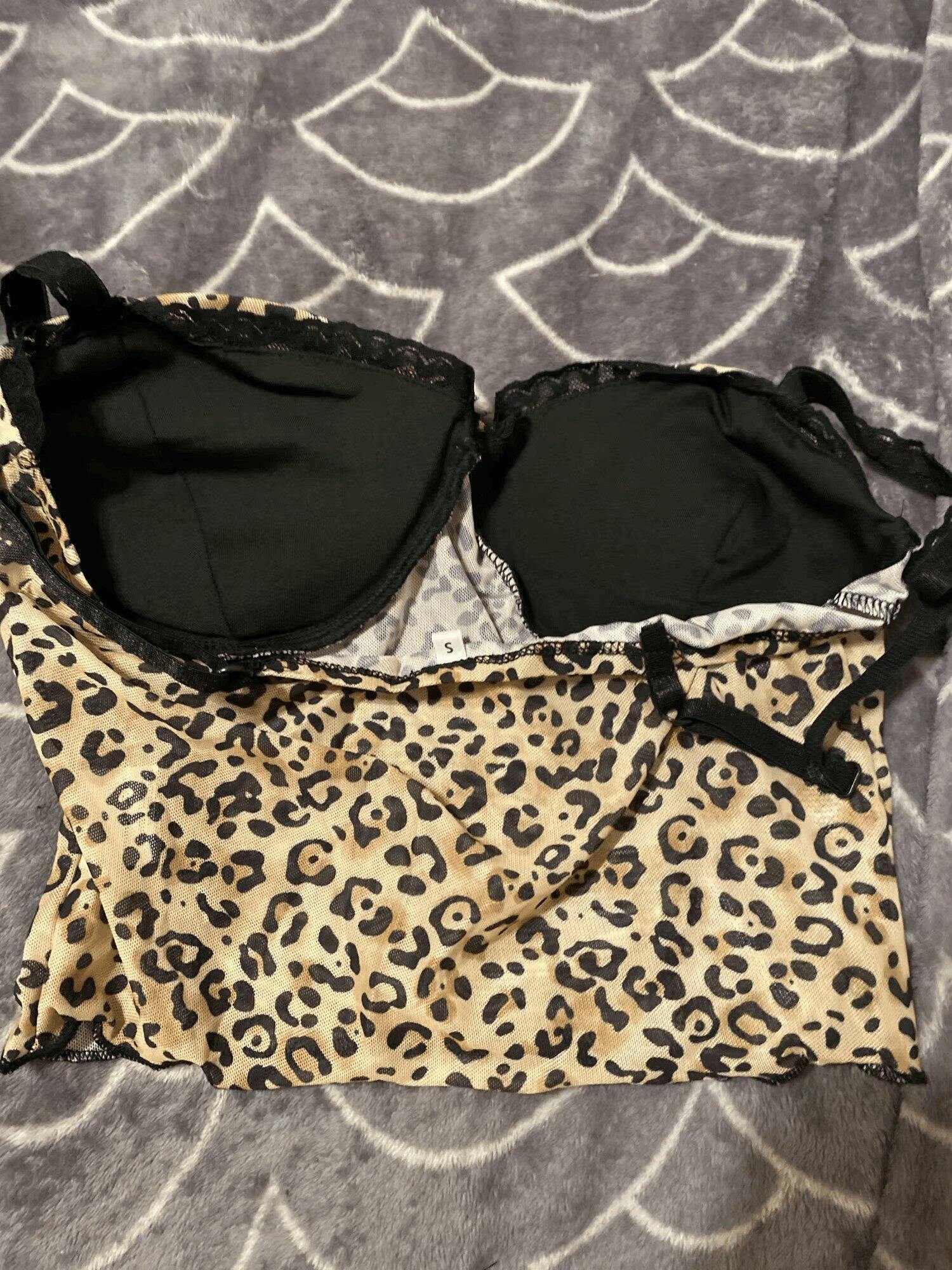 SUPER DUPER CUTE💋💋 i love this top, it’s stretchy but has a great fit, adjustable strap bands, and it does have bra pads in the shirt but you can’t take it out sadly, it is also see through which is a cute look and very short/cropped, i love it !!!!!!!