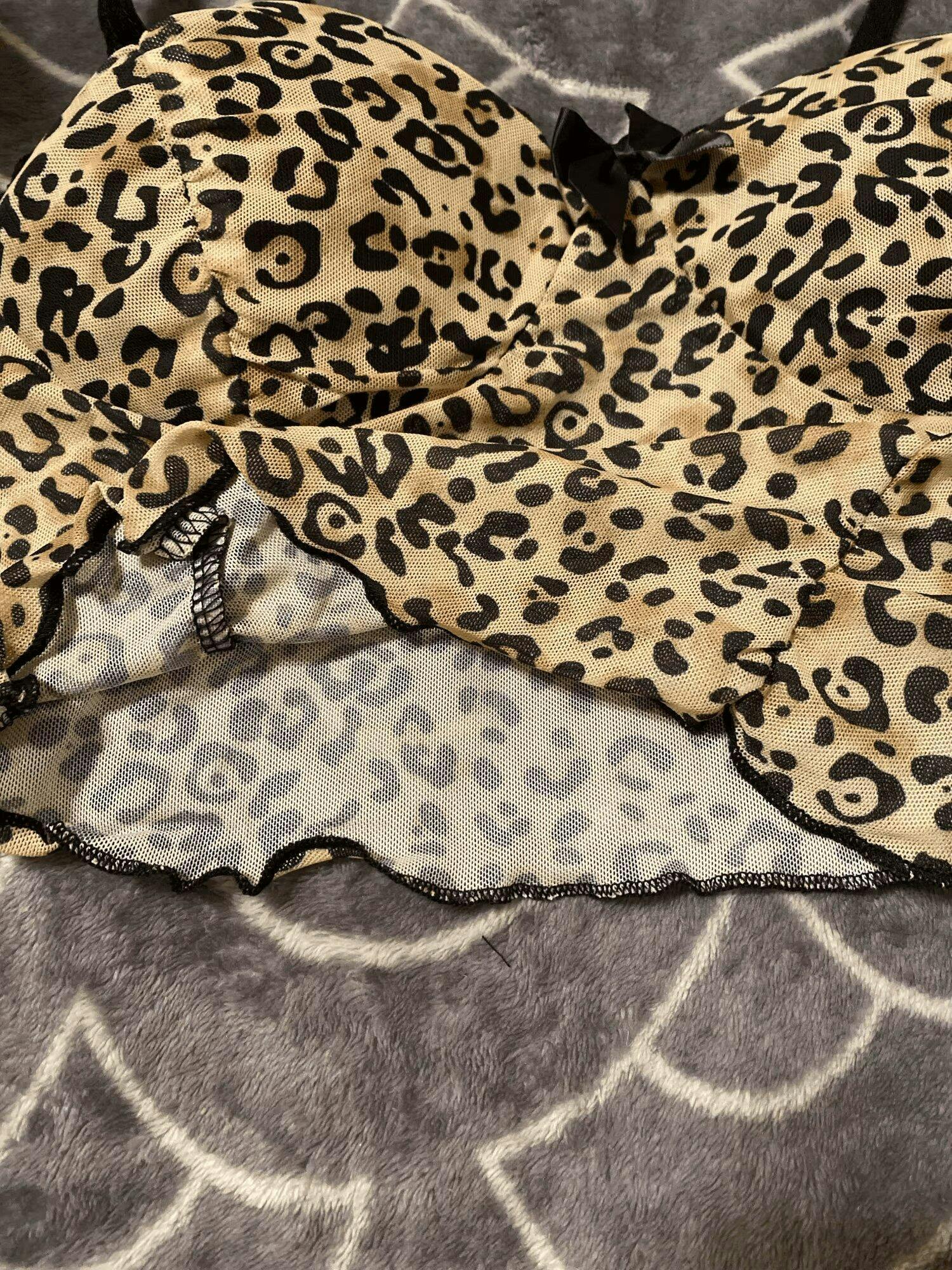 The Y2K Leopard Bow Sheer Top gives a flirty 2000s vibe with its see-through leopard mesh and lace details. Designed with a slim fit and a front bow accent, this top is perfect for night-outs or pairing with cargo pants for a confident Y2K look.