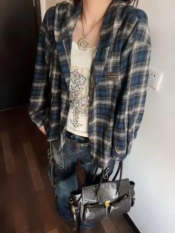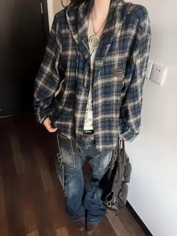 A laid-back plaid shirt with an oversized cut that channels Y2K streetwear and grunge vibes. Designed for layering over tanks or tees, it offers a relaxed fit with timeless checks that work across casual looks. Made with soft fabric for comfort, it comes in multiple color options so you can style it your way all season long.