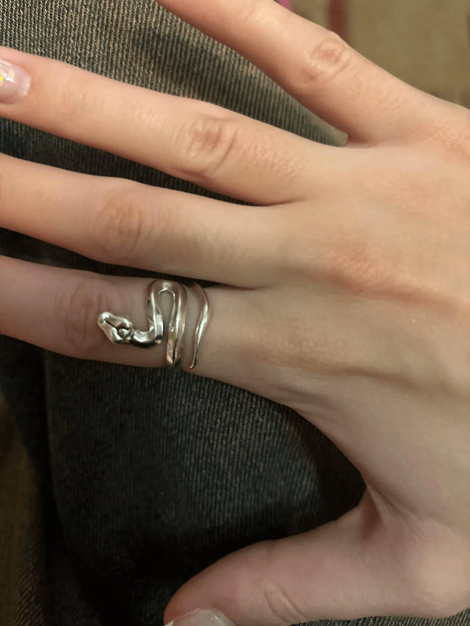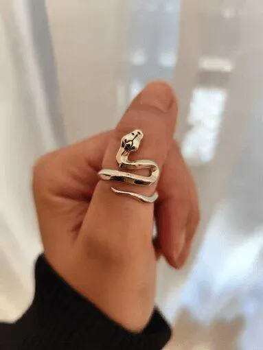 Dieser von Y2K inspirierte Schlangenring zeigt ein schlankes Design mit einem gewundenen Schlangendetail. Hergestellt mit einem matten Silberfinish, verleiht er deinem Outfit eine markante Note. Verstellbar für eine bequeme Passform, ist er das ultimative Accessoire für einen auffälligen Stil.