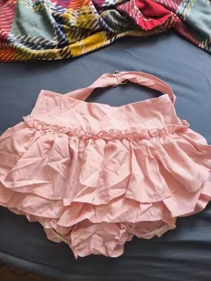 literally obsessed!!! 💖 got so many compliments from my friends. the color is the perfect pastel pink and the ruffles look sooo good!! for reference, i got the largest size and it fits perfectly. if you wanna wear it high-waisted, size down a bit, otherwise it’ll show the shorts underneath
