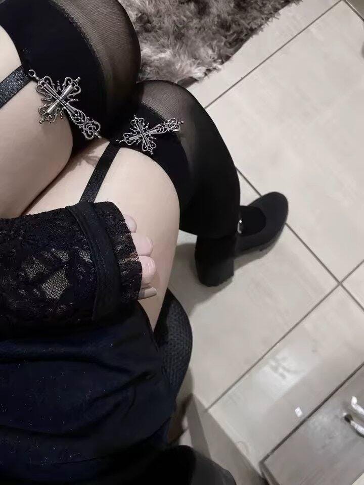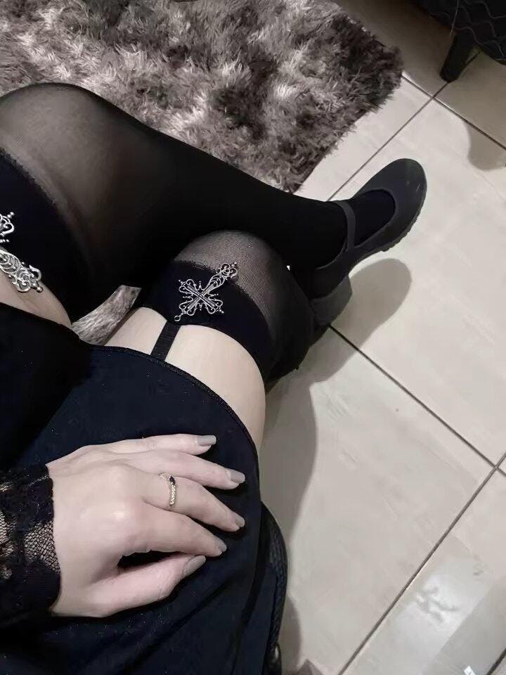Add gothic edge to your Y2K fits with these cross suspender socks. Designed with thigh-high coverage and metallic cross accents, they bring instant attitude to mini skirts, shorts, or layered grunge looks. Stretchy and bold, they’re the ultimate statement accessory for alt streetwear styling.